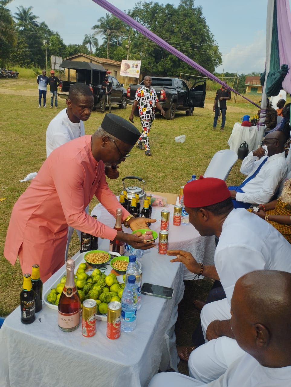After his interaction with the Royal Father, the Chairman and his entourage proceeded to Ogwu Primary School Field, where he continued his discussions with community members on development priorities.