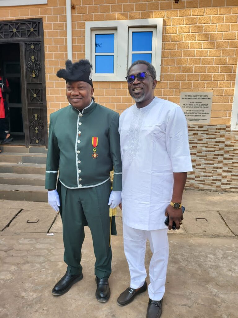 Hon. Onah and former Governor Ugwuanyi shortly after the latter was conferred with Papal Knight of St. Gregory by Catholic Bishop of Enugu, four months ago.