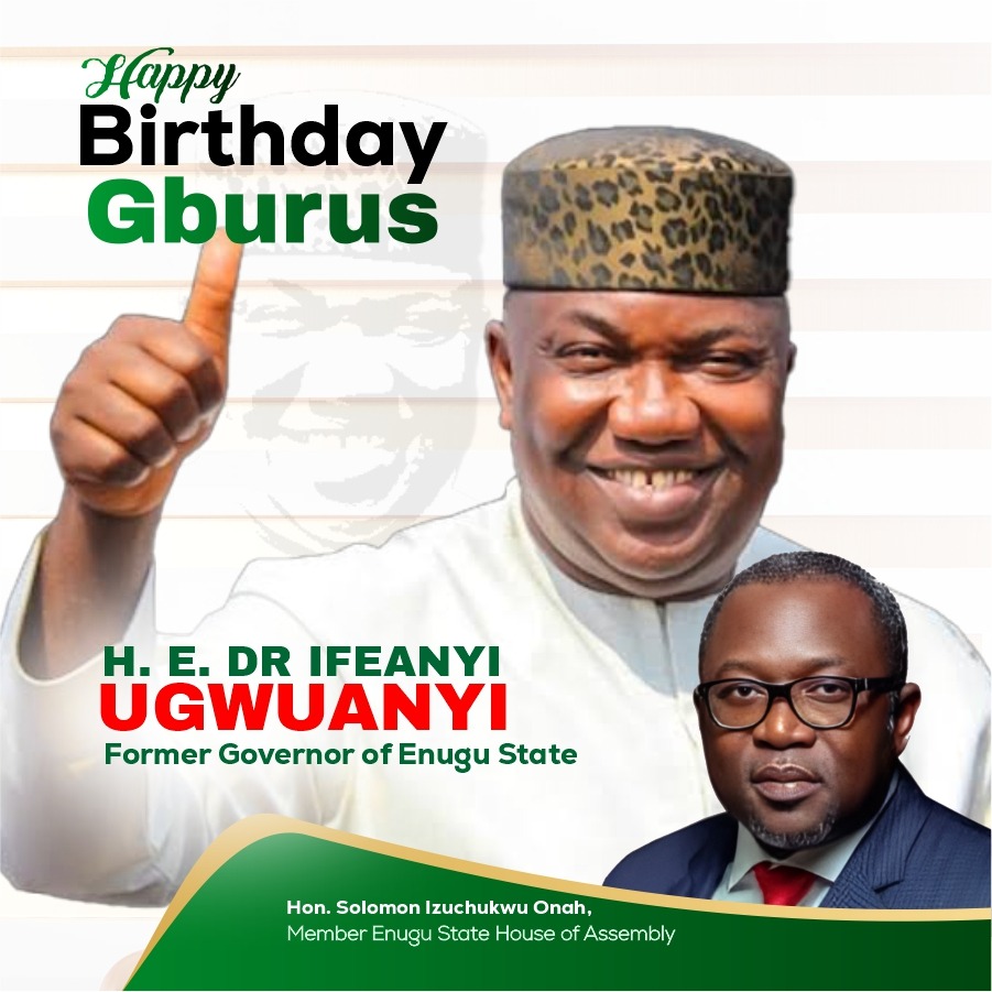 The Member representing Udenu Constituency in the Enugu State House of Assembly, Hon. Solomon Izuchukwu Onah, has extended heartfelt birthday wishes to His Excellency, Rt. Hon. Ifeanyi Lawrence Ugwuanyi, fondly known as Gburugburu, describing him as a true leader, a man of peace, and a beacon of hope.