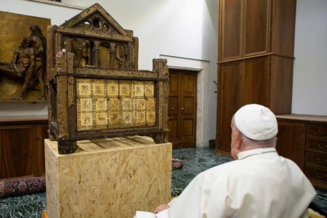 The Holy Father’s veneration of the chair — a symbol of the Church’s unity under the instruction of Christ — takes place amid the commencement of the second session of the Synod on Synodality.
