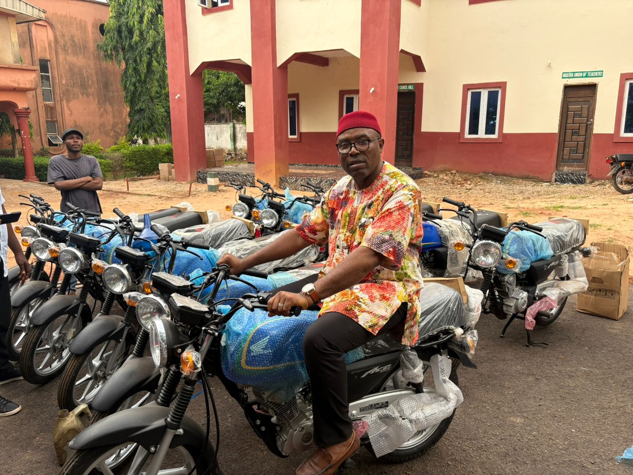 Udenu Chairman, Aka Eze Aka, test-running the Motorbikes his administration donated to Neighborhood Watch Security Guards, to beef up security against kidnappers, last month.
